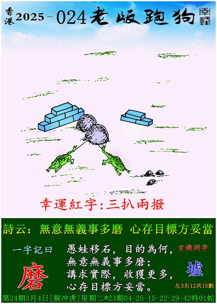 024期老版跑狗一字記之曰:【磨】 詩雲:無意無義是多磨,心存目標方妥當。