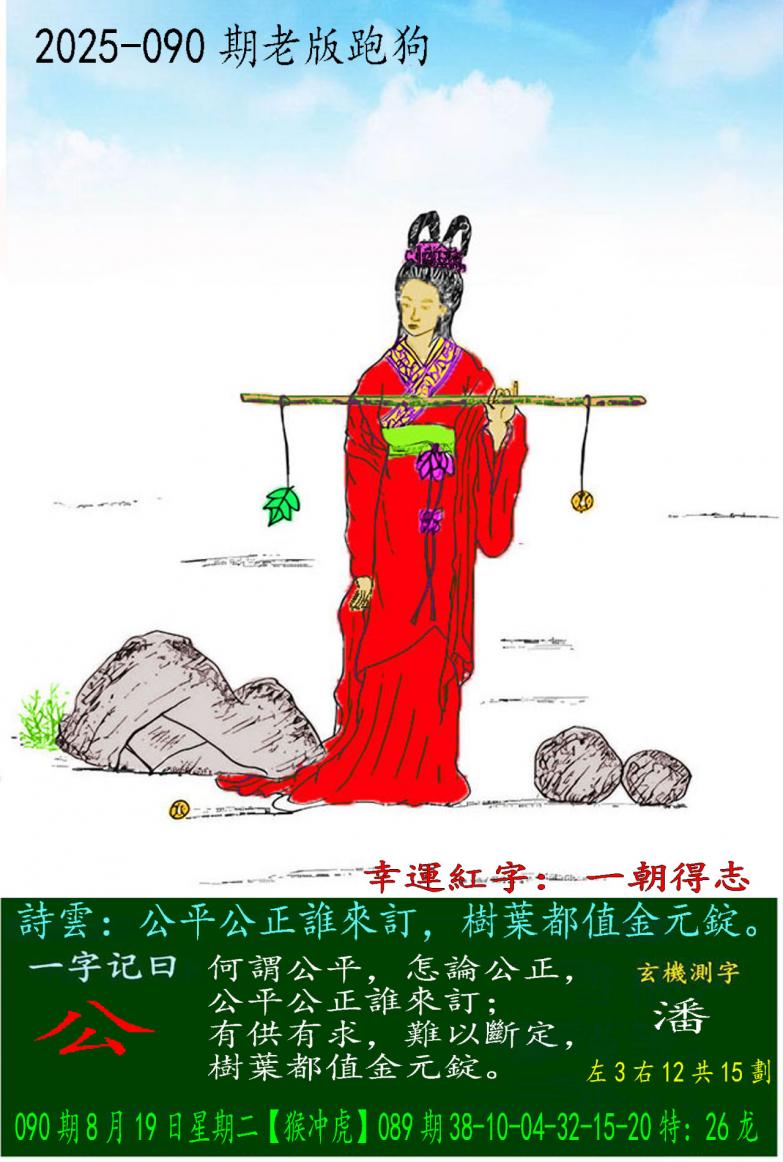 090期老版跑狗一字記之曰:【公】 詩雲:公平公正誰來訂,樹葉都值金元錠。