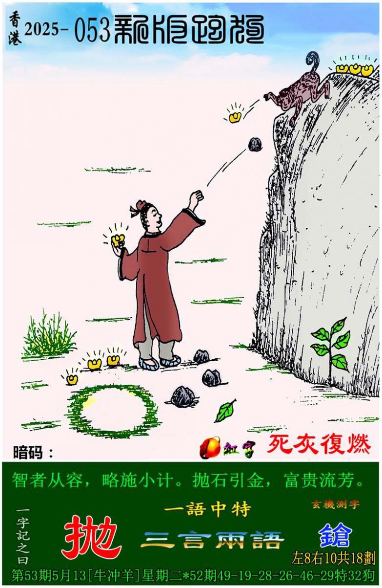 053期新版跑狗一字記之曰:【拋】 玄機測字:【鎗】一語中特:三言兩語