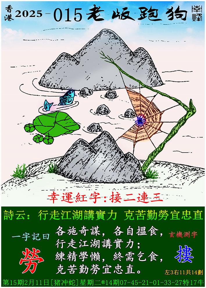 015期老版跑狗一字記之曰:【勞】 詩雲:行走江湖講實力,克苦勤勞宜忠直。