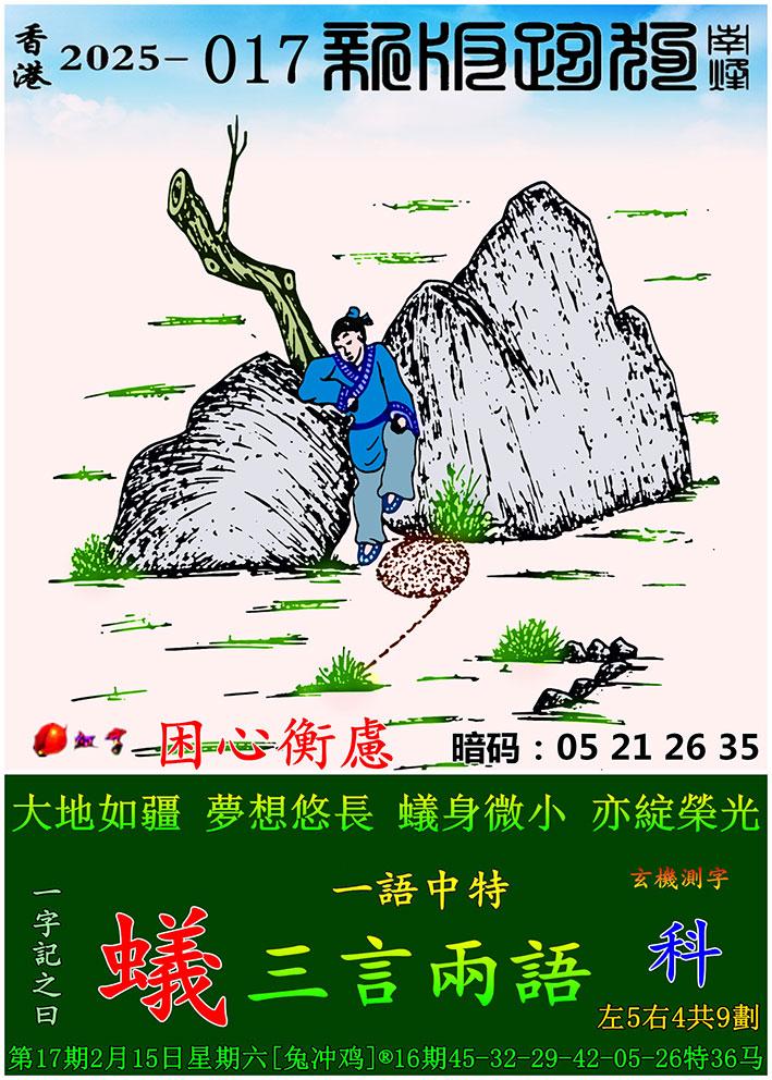 017期新版跑狗一字記之曰:【蟻】 玄機測字:《科》 一語中特:三言兩語