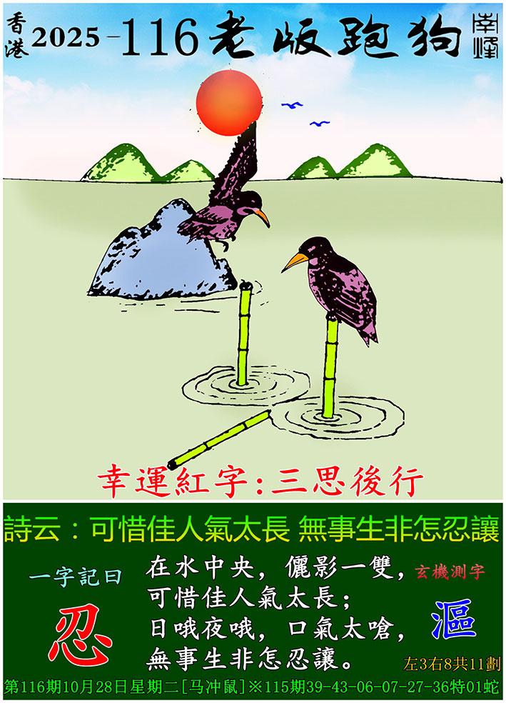 116期老版跑狗一字記之曰:【忍】